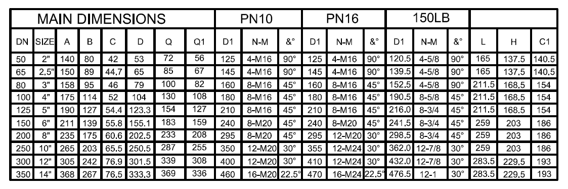 -连接标准:PN10/16, ANSI150, DIN16, JIS10K, 16K